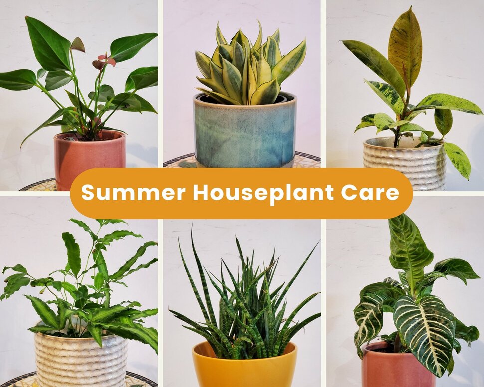 Summer is a good time to slow down and tune into your plants. Drooping, yellowing, or browning leaves can be signs of overwatering, underwatering, or dry air. Dusty leaves reduce photosynthesis, so gently wipe them with a damp cloth when needed.