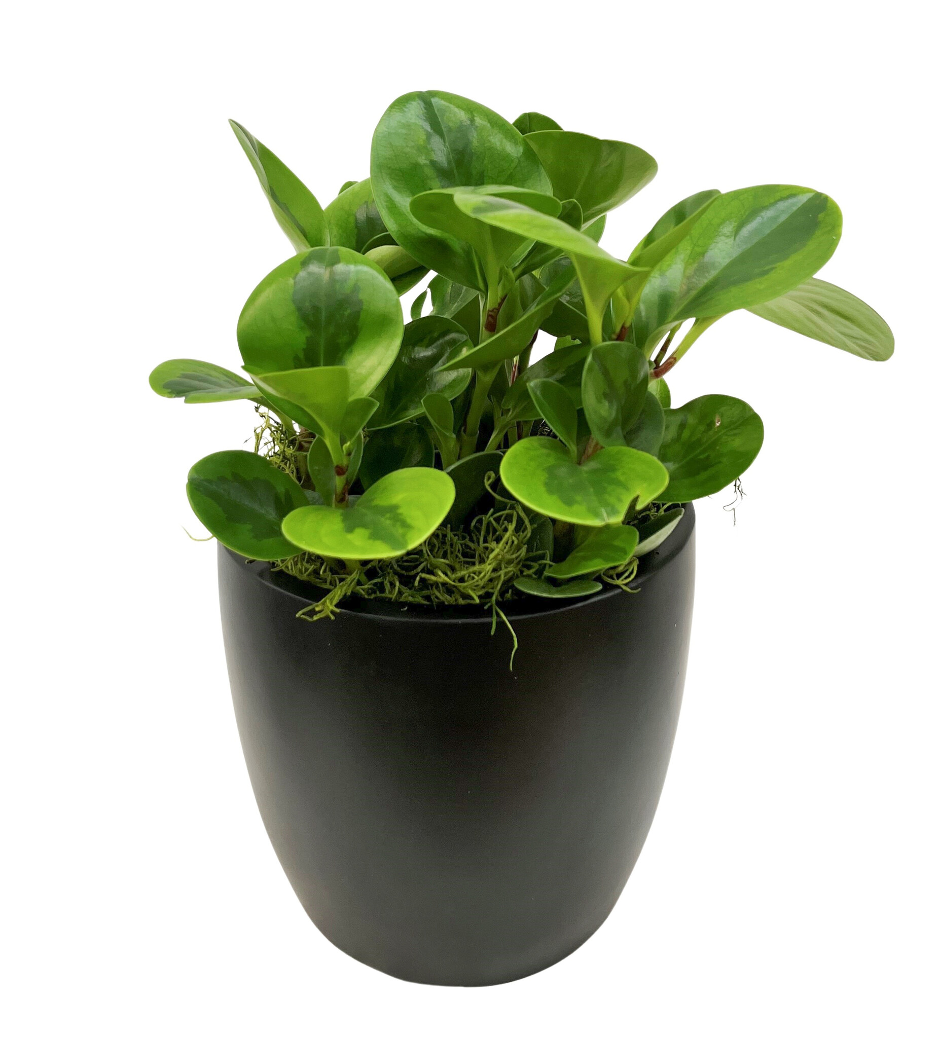 • Peperomia Bicolor features thick green leaves with rich contrasting tones underneath in a compact, tidy form. A low-care houseplant that adds soft color, texture, and easy charm to shelves and small indoor spaces.