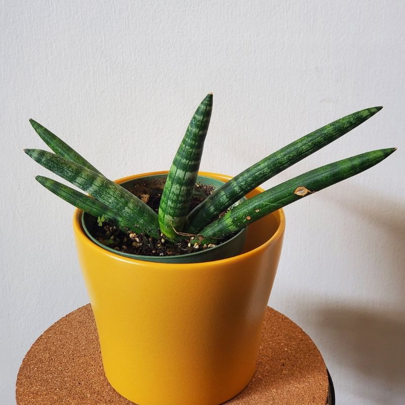Sansevieria ‘Starfish’ is one of the most sculptural snake plants, loved for its thick, cylindrical leaves that grow outward like a starburst. Its bold shape makes it feel almost like a living piece of modern design.